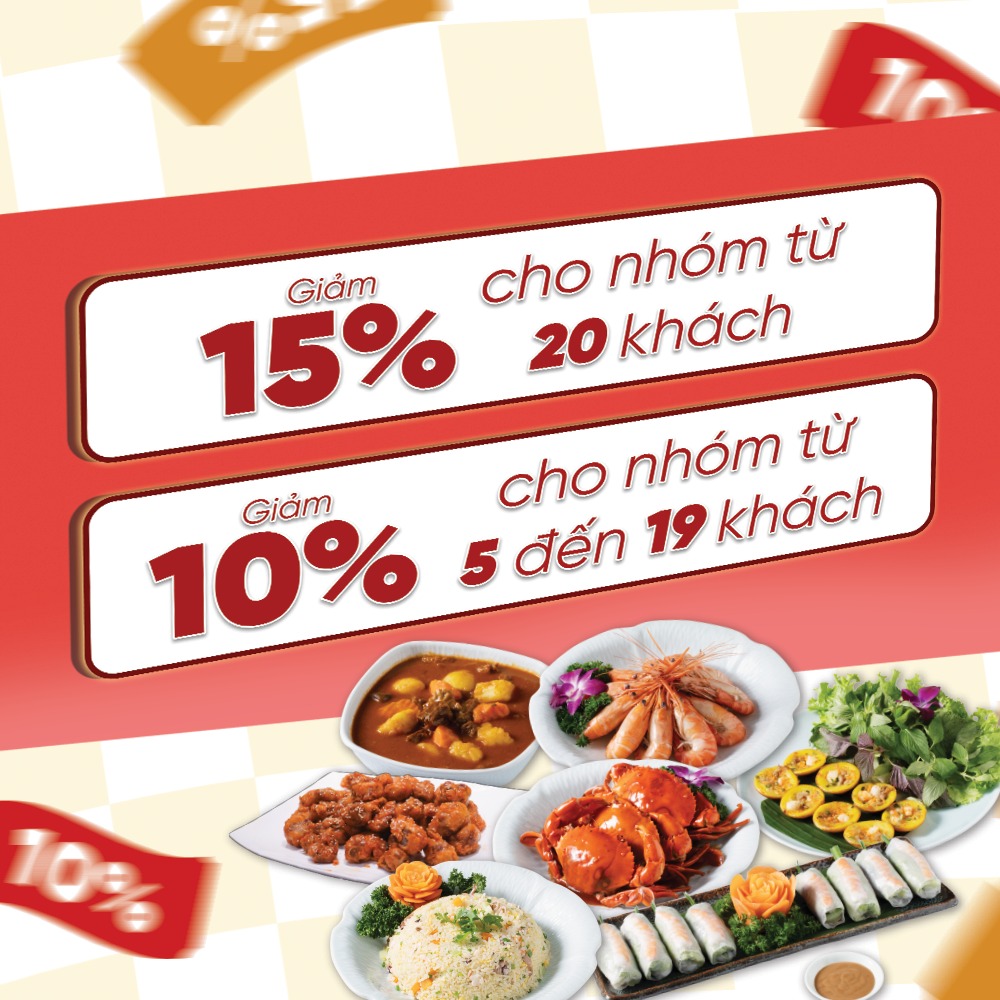 🍽 Nhóm từ 5 – 19 khách: Giảm ngay 10% tổng hóa đơn